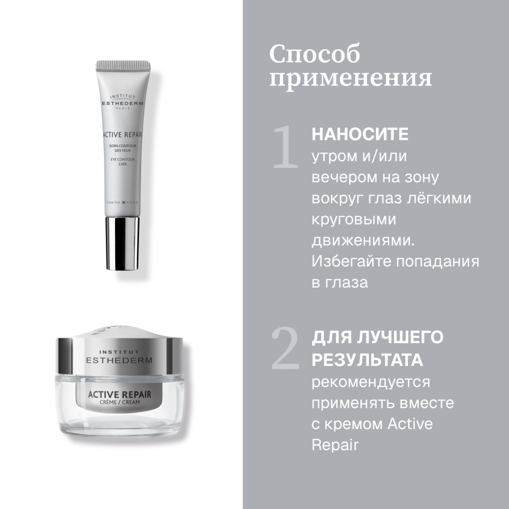 Восстанавливающий крем для контура глаз Institut Esthederm Active Repair разглаживает мелкие морщины, снимает отечность и минимизирует темные круги.