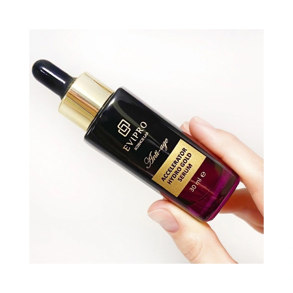 Гидроконцентрат ACCELERATOR HYDRO GOLD SERUM с пептидами и частицами золота для 3D лифтинга cтимулирует клеточное обновление, восстанавливает утраченные функции кожи и обладает мощным антиоксидантным действием. Пептиды-блокаторы нейромышечной передачи обеспечивают неинвазивный «эффект ботокса» с сохранением живой мимики, предлагая альтернативу инъекциям.