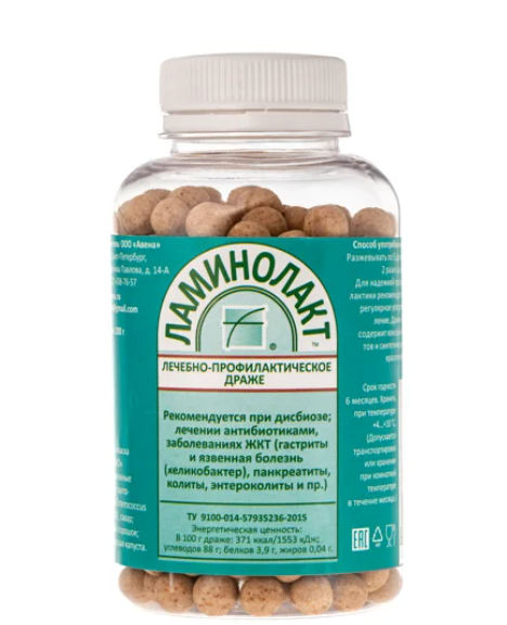 Ламинолакт – вкусное и полезное драже, комплекс пробиотика и пребиотиков. В качестве пробиотика используются полезные бактерии Enterococcus faecium L3, в качестве пребиотиков – натуральные компоненты. Ламинолакт восстанавливает нормальную микробиоту в организме и устраняет заболевания и состояния, связанные с дисбиозом.
