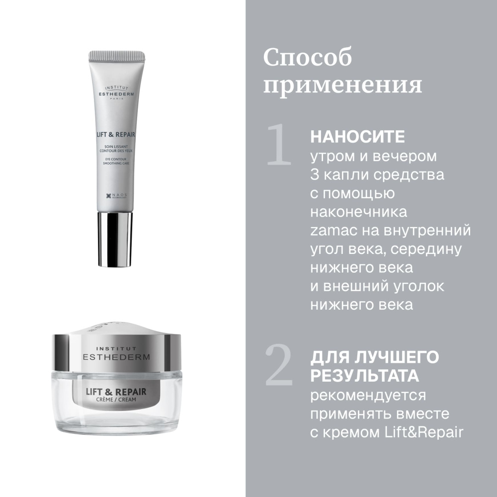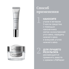 Крем для контура глаз делает кожу упругой, подтянутой и сияющей. Он мгновенно разглаживает мимические морщинки и устраняет следы усталости. Взгляд становится свежим и отдохнувшим. В основе формулы – уникальная клеточная вода, которая абсолютна совместима с кожей и оптимизирует функции наших клеток. Подходит для всех типов кожи, особенно для уставшей и/или зрелой кожи с потерей упругости и тонуса, а также при наличии возрастных изменений. Специальный наконечник ZAMAC позволит сделать массаж зоны вокруг глаз в домашних условиях.